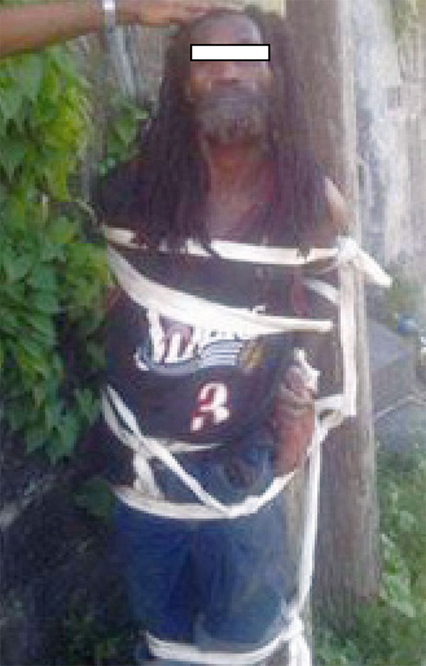 Terry, who claims to be the main captor said: “We met a vagrant who had been continuously stealing our goods in our garden. We caught him red handed so we picked him up and we tied him and made an example out of him”.