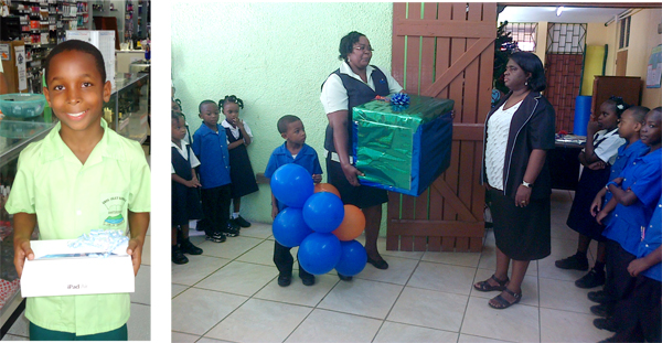 Gabriel Jn Baptiste, student from Gros-Islet Primary School, winner of an Ipad.