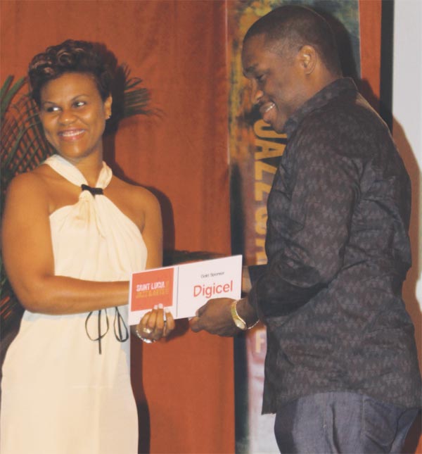 Digicel has officially reaffirmed its commitment to support the Saint Lucia Jazz and Arts Festival 2015 to the Saint Lucia Tourist Board at the sponsors cheque presentation held at Sandals Halcyon.