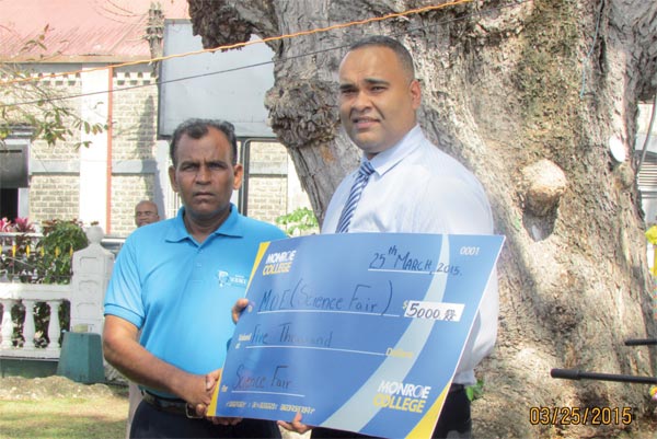 This year Monroe College is sponsoring the Fair at the Bronze level with a donation of EC$5,000.00. At the opening ceremony, Monroe College’s Director of Administration, Mr. Neil Nichols, joined other sponsors in expressing support for the event as he presented a cheque to the Science Fair Committee. In his remarks he noted that Monroe College was happy to be associated “with the innovations of our bright young minds”.
