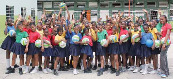 The Voice paid a courtesy call to the School on Tuesday while one of the training sessions was in progress and spoke to PE teacher Petit about this new sporting initiative. She said, “We are simply getting the girls exposed to mini volleyball, Dennis St. Clair offered his services for free every Tuesday and we happily accepted the offer. At present we are working with the Grade 4 classes ages 9 – 10 years old”.
