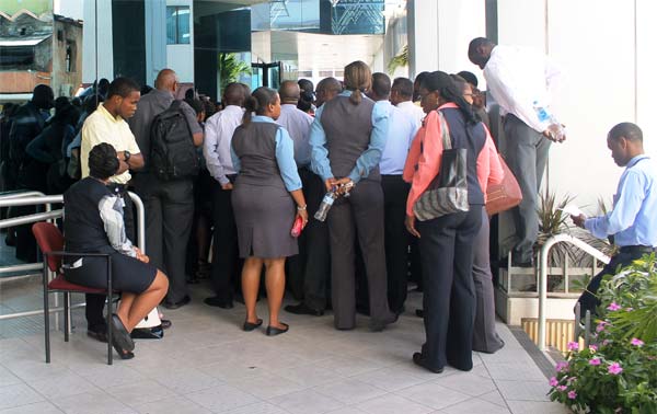 This week it was the turn of Bank of Saint Lucia. Employees Tuesday undertook a wild cat strike that lasted just for the day. They returned to work yesterday. About 250 employees participated in the strike action from the bank branches in Soufriere, Vieux Fort, Bridge Street in Castries, the Castries Waterfront, Gros Islet and other operational units.