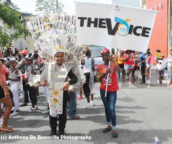 This year has been an exception. As a sponsor of a section of Barry George’s multi awarding winning band, Just Us Kids portraying “Commercial Break: Tribute to our Sponsors”, THE VOICE which is celebrating its 130th. anniversary this year was thrust into the spotlight winning a second prize (Individual) through Amelia Charlemagne portraying “Spreading the News” in last Sunday’s Junior Carnival.
