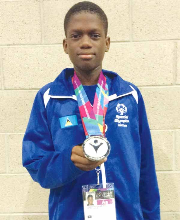 Silver for Jeremiah Charles in Bocce. [Photo: ASt. Lucia Special Olympics]SPECIAL Olympics Team St. Lucia continued showcasing their skills and abilities through intense and friendly rivalry as the Special Olympics World Games in Los Angeles, California progresses.