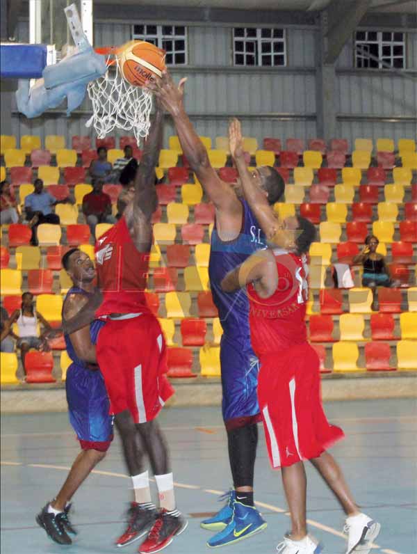 Le Sport kept the pressure on Fire Service with a 36 – 25 lead at the half time whistle. (Photo Anthony De Beauville)