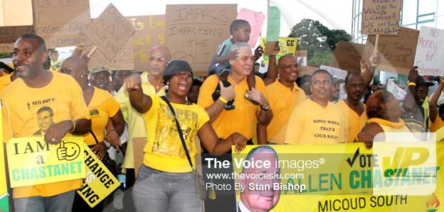 ![Image: UWP Political Leader, Allen Chastanet, joins protesters on last Thursday’s march. [PHOTO: Stan Bishop]](https://www.thevoiceslu.com/wp-content/uploads/2015/10/uwp2.jpg)