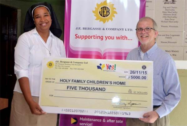On Thursday, J.E. Bergasse & Company made a financial donation to Sister Antonia David (see picture) of the Holy Family Children’s Home in the name of all its customers.