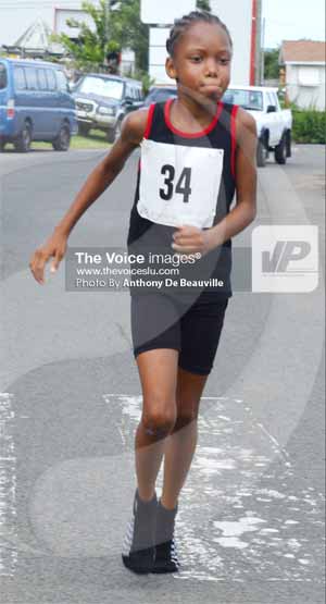 At the start Steven Octave from Babonneau Primary took the lead among the boys and held on up until the bottom of the Bella Rosa hill before fading away allowing Regis, running bare feet, to take charge and never look back.