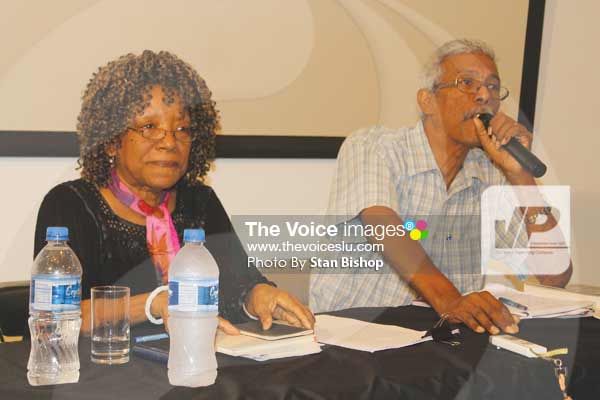 Cuban writer, Nancy Morejón, and Saint Lucian poet/actor, Mac Donald Dixon, who moderated the conference and debate session. [PHOTO: Stan Bishop]Morejón discussed Cesaire’s long poem, “Cahier d’un retour au pays natal”, explaining elements of the late Martiniquan poet/politician’s extended version of the poem published in 1947 that remain relevant today.