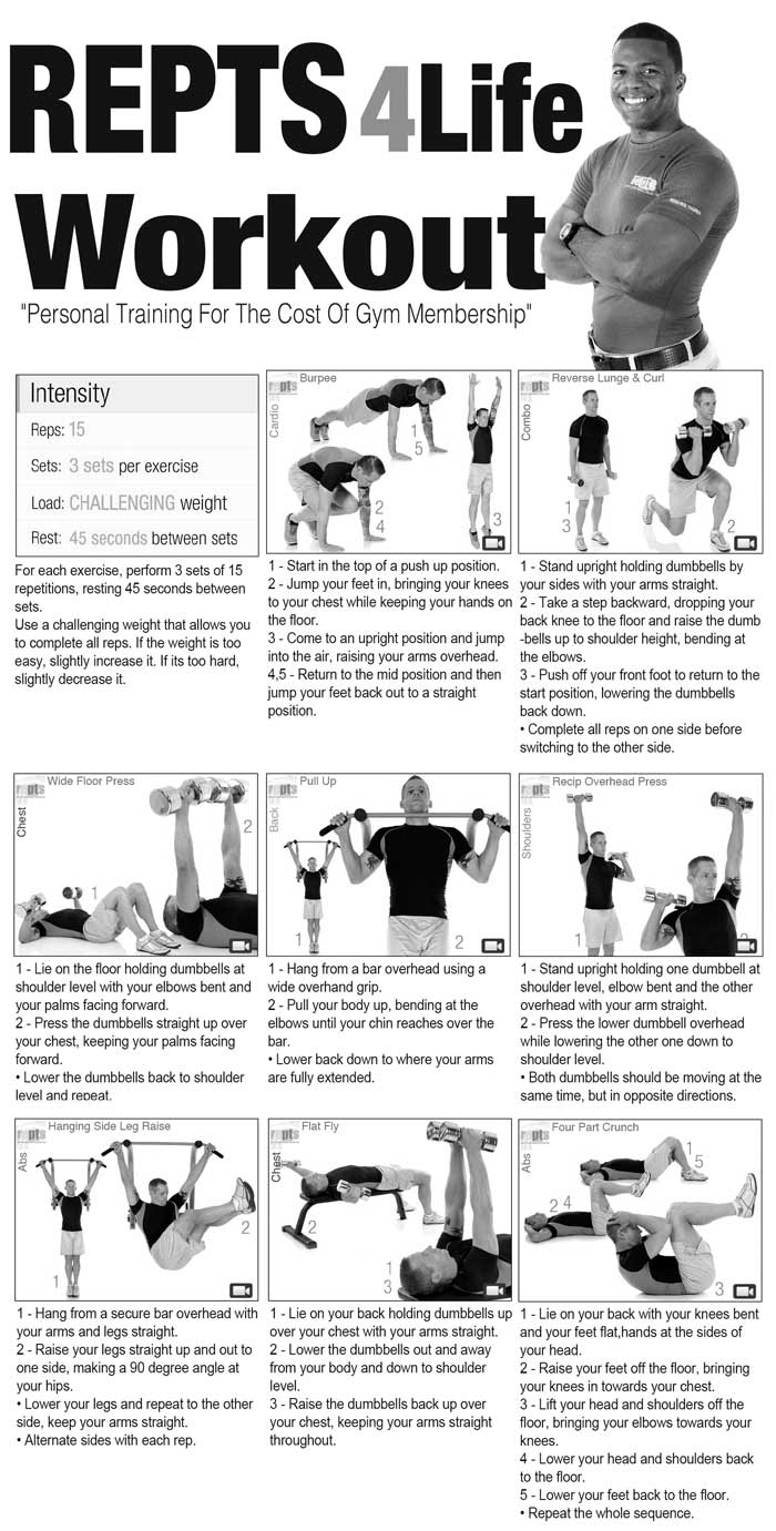 Keeping on your fitness game–with or without a personal trainer– is easier than ever with Repts4Life workouts.here’s a fitness programme to help you shed unwanted pounds, trim excess body fat, and sculpt a lean body. Each week, the workouts will become progressively challenging to keep you motivated toward your fitness and weight loss goals. Each exercise should be performed in sequence with one day of rest in between and each should eventually be completed within 30 to 45 minutes. Personalized programmes are also available for a nominal fee. In the meantime, do take advantage of our ongoing special: first like and share our face book page/cover photo/video etc. and then Renew or Signup for any group personal training package within one week of doing so and get 20% OFF your monthly personal training fees for them. You’ll also get FREE gym membership, a FREE diet, and FREE monthly massages with timely renewal. Get two to six personal training sessions per week starting from as low as $100 monthly. Returning clients pay no registration. Gift certificates and FREE trial sessions are available!