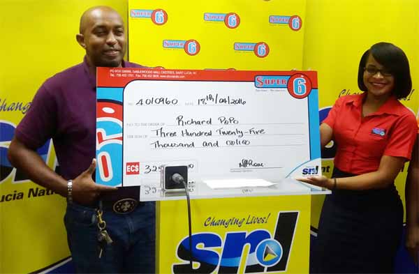 Yesterday morning at the SNL Headquarters in Sunny Acres, Richard Popo of Vieux Fort claimed his cheque for $325,000.