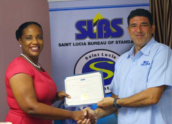 THE Saint Lucia Bureau of Standards (SLBS) has awarded the Standards Mark to Blue Waters, one of the largest manufacturers and distributors of bottled water on the island.
