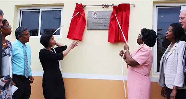 Governor General of St. Lucia, Dame PearletteLouisy and Ambassador Socorro Flores Liera unveiled the plaques on the security monitoring and ambulance building and the morgue. They were accompanied by the Prime Minister, other government ministers and specially invited guests.