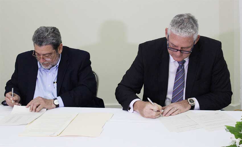 Prime Ministers signing on behalf of their respective countries were Saint Lucia’s Allen Chastanet, Barbados’ Freundel J. Stuart and St. Vincent and the Grenadines’ Dr. Ralph Gonzalves.
