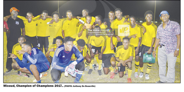 MICOUD are champions of Blackheart Production’s Champion of Champions one-day tourney following their 1-0 win over Babonneau on Saturday evening at the Phillip Marcellin Grounds in Vieux Fort.