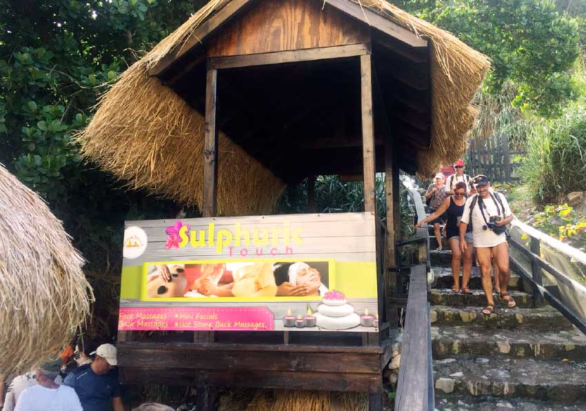 The first of these facilities is a $1 per minute massage parlour, dubbed “Sulphuric Touch”. Clients will be pampered by a well-trained and certified Massage Therapist in a unique and authentic setting. The Sulphur Springs black water pools have always been known for their calming and therapeutic properties. Sulphuric Touch provides traditional spa services, including back, foot and hot stone massages in addition to mini facials and treatments with the Park’s very own mud and mineral water.