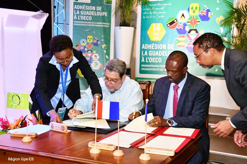 Friday, March 15, 2019 — The Caribbean island of Guadeloupe – an overseas Department of France, has formally joined the Organisation of Eastern Caribbean States (OECS) – a regional grouping comprising the independent and non independent countries of Antigua and Barbuda, Commonwealth of Dominica, Grenada, Montserrat, St. Kitts and Nevis, Saint Lucia, St Vincent and The Grenadines, British Virgin Islands, Anguilla and Martinique.