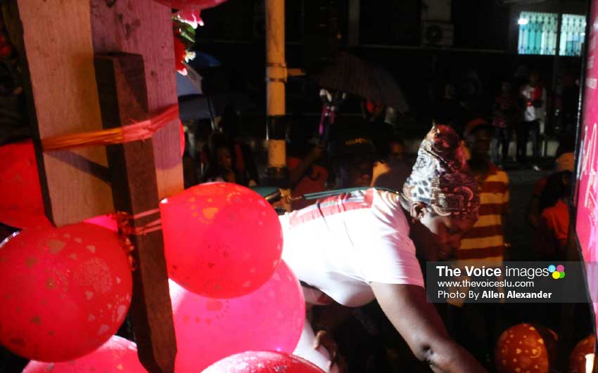 The vigil started at the intersection of Chaussee Road and La Pansee, the point at which Arnold’s life was taken. A flock of supporters, wearing red and white t-shirts with a portrait of Arnold on the front, showed up in spite of the rain. Candles were lit and very marched the procession, led by the mother, father and guardian of Arnold, moved up the Calvary. Supporters sang religious songs as they marched along. When they were halfway up the Cavalry, police from a patrol vehicle asked the procession to turn around, but they peacefully declined and continued on their way, along the bypass between Rambally’s Funeral Home and The VOICE Publishing Company, towards Darling Road.