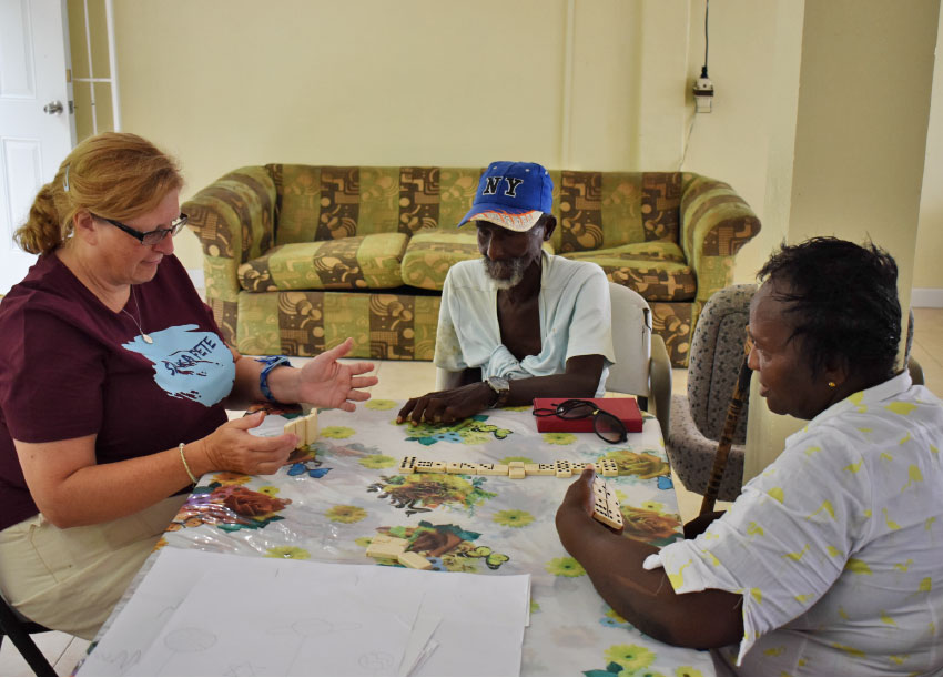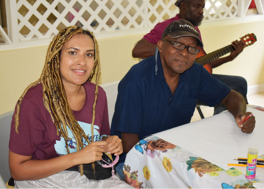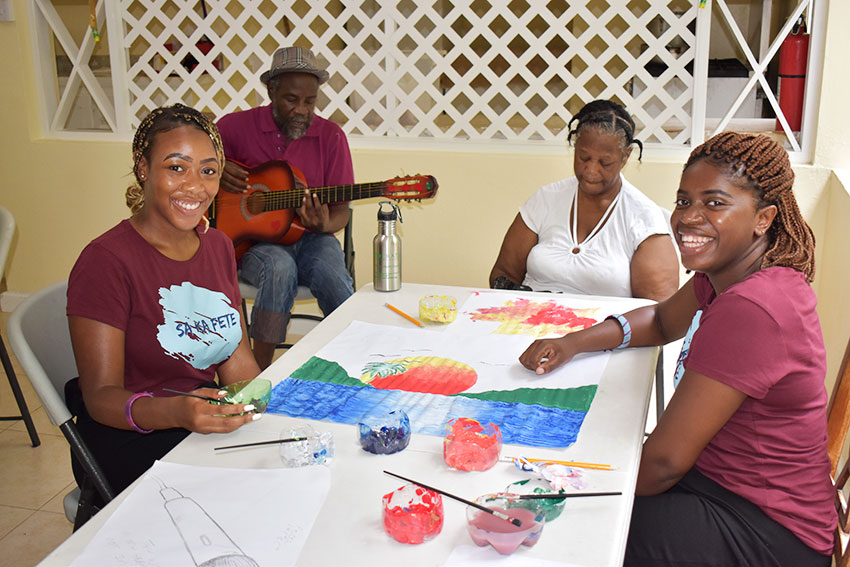On Tuesday September 17th, the group paid their second visit to the residents of Cornerstone Humanitarian Society. Most of the residents at Cornerstone, many of whom have been abandoned by relatives, suffer with various mental health issues. The SA KA FETE group engaged the residents in conversation over art-creation and craft-making. The group included Harry Spear, Co-Founder of Caribbean Elective, Taslima Khan; Liz Sharpe; Charlotte Mathurin, Caribbean Elective Volunteer Coordinator; Debby Brown-Joseph, visiting nurse; and Shakerah Brown and Sarah Russell, psychology students from Birmingham University.