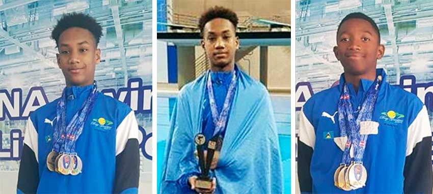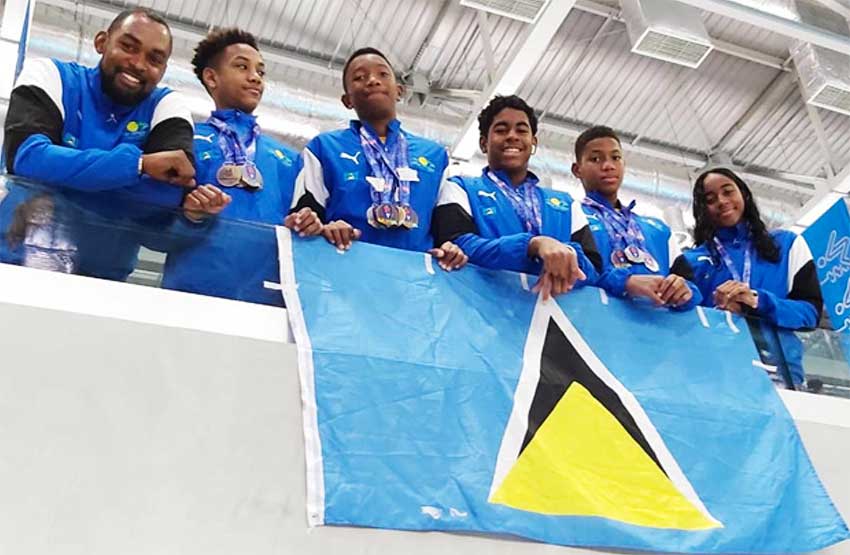 The Saint Lucia delegation which comprised 4 males and 1 female in the persons of Tristan Dorville (SeaJays 11-12), Antoine Destang (Sharks 11-12), Karic Charles (11-12), Ethan Hazell (11-12) and Naima Hazell (13-14) Lightning Aquatics.