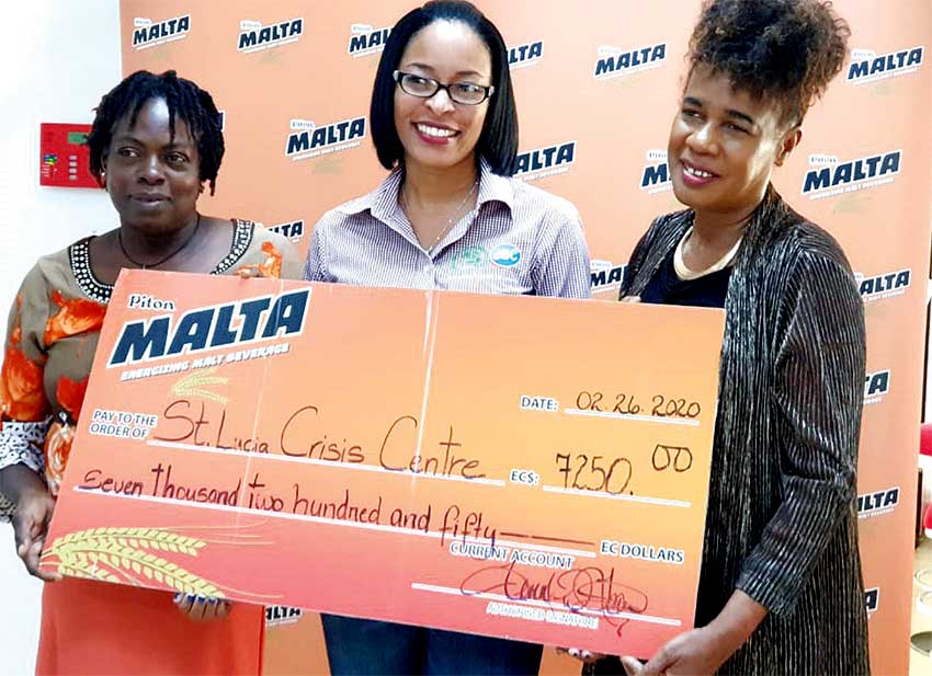 PRESS RELEASE — THE Saint Lucia Crisis Center has received a much-needed donation to continue its work with local families, thanks to Windward & Leeward Brewery Ltd (WLBL), Du Boulay’s Bottling Company Ltd (DBC) and their most recent Piton Malta campaign.