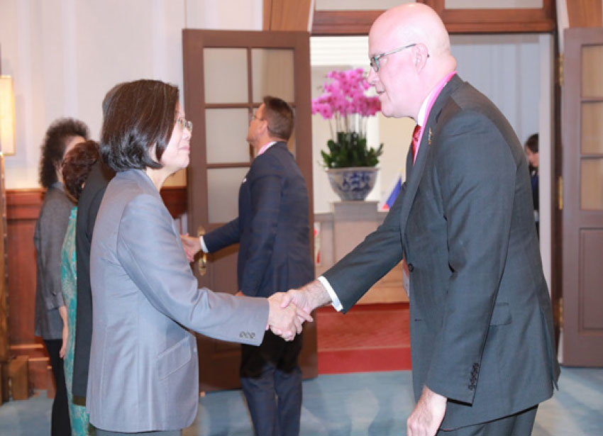 Ing-wen (front left) during his visit to Taiwan in October 2019.