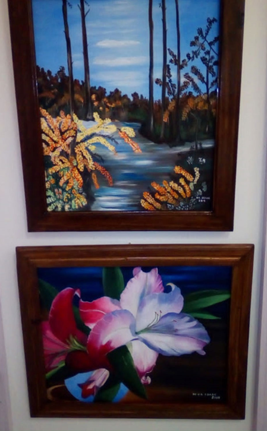 “I started when I came back to Saint Lucia—that was in 2014. I didn’t even think I would be able to paint again because I hadn’t painted for such a long time, maybe like 10 years. I surprised myself because I thought I wouldn’t be able to do anything and I realized as I kept on painting I got better than I was before, so that long break did a real good job on me,” the art enthusiast said brightly.