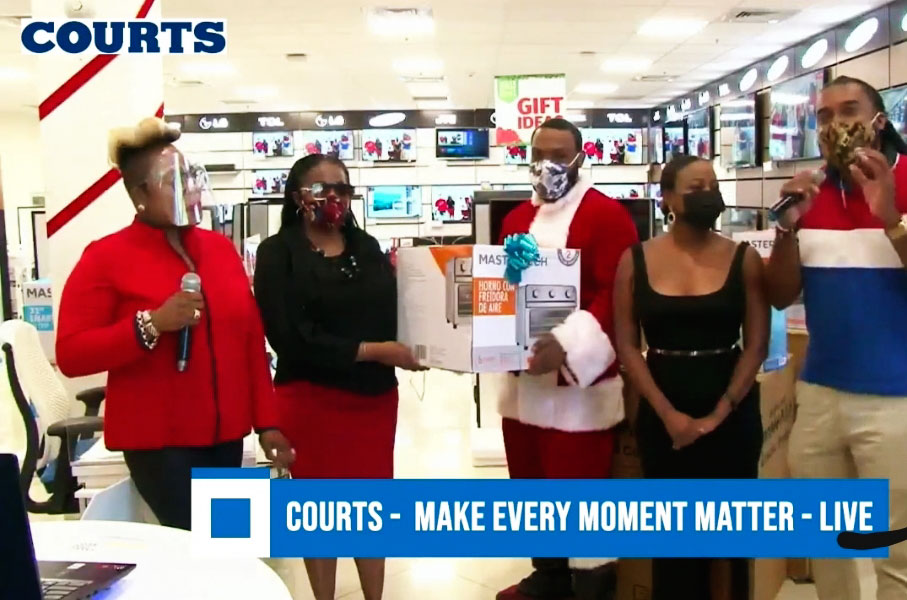 PRESS RELEASE — Castries, St. Lucia, 26-12-2020: Unicomer (Saint Lucia) Limited made this holiday season memorable for several of their loyal customers. Unsuspecting customers were contacted on December 23rd after submitting their wish lists online via the Courts Facebook and Instagram pages. The pleasantly surprised patrons were presented with their Courts’ wish list items in store, while being serenaded to by locally renowned vocalist Michael Robinson.