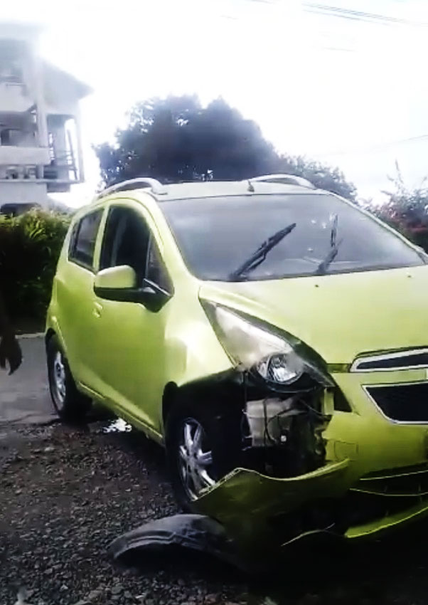 A young male driver of a green Chevrolet Spark, had collided with a silver vehicle. When questioned about his license by witnesses on the scene, he deduced it would be a better idea to make a clean getaway and proceeded to make good on that idea by dangerously reversing the vehicle uphill.