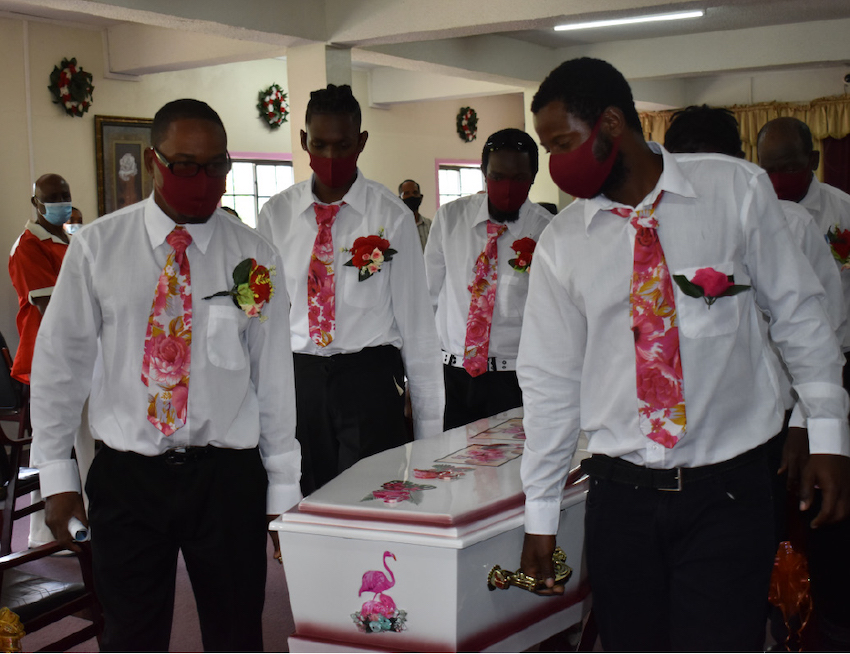 The event began at 10am and was streamed ‘live’ for the many La Rose enthusiasts and family members who wished to attend the event but were restricted from doing so due to existing protocols for management of the COVID-19 Pandemic on the island. Those who were fortunate enough to attend were amazed upon entry at the beautifully decorated chapel, which was very well adorned with the most beautiful flower arrangements in red, pink and white roses. Those invited were asked to dress to suit the La Rose theme of the event and they did not disappoint. In fact, the Pall Bearers and Ushers also set the tone with their matching outfits, adorned with beautiful roses. The ushers were dressed in flowered skirts and shirts with the photo of Mr. Antoine and greeted guests with beautiful roses from matching baskets.