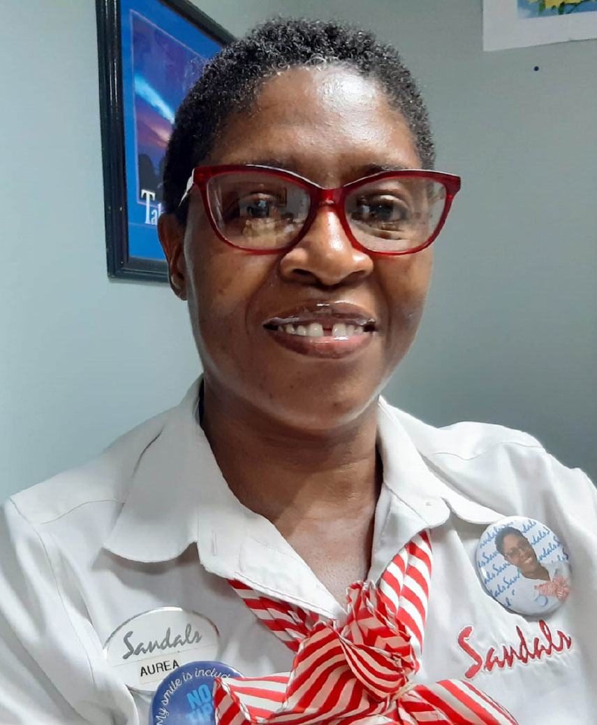 Aurea’s journey at Sandals Grande started as a senior supervisor, shortly after which she was promoted to Rooms Manager and now Executive Housekeeper. Says Aurea, “I have under my care some 90 team members currently but I can have up to 120 in my team. My passion is always about developing people and caring for them. As Executive Housekeeper I am often referred to as a mother. I have to nurture them and care for them. I advise them on their personal life, work, you name it. They come to me when they have aches and pains. I usually walk with a big bag and everyone is always laughing at me about it but I know why I have it. When my children are not well I have to take care of them and I enjoy dong that”.