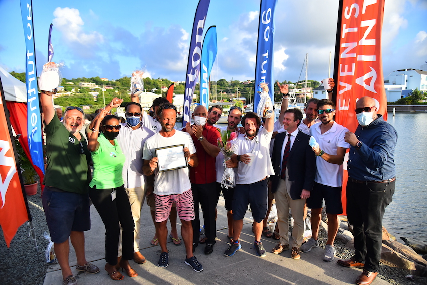 Saint Lucia also has special significance for co-owner Federico Marchi whose daughter’s name is Lucia. Captain of Nacira, Federico Dosso, was presented with a bouquet by CEO of Events Saint Lucia, Lorraine Sidonie. Minister of Tourism, Hon. Dr. Ernest Hilaire, presented a plaque to the owners, captain and crew of Nacira, to celebrate their achievement as 1st Over the Line in ARC 2021.