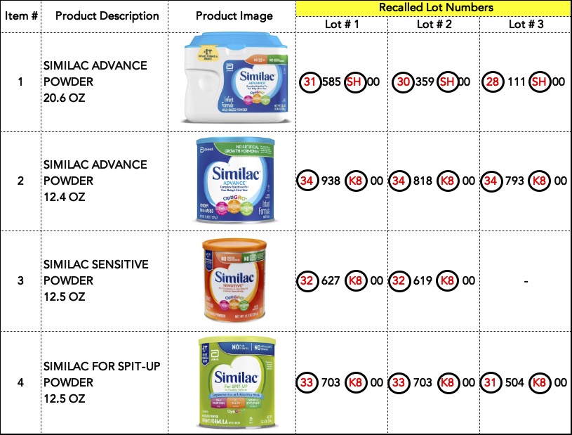 The recall is isolated to powder formulas, including Similac®, Alimentum® and EleCare®, manufactured at one of their US plants located in Sturgis, Michigan.