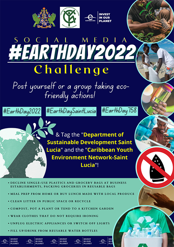 Individuals and groups may indicate interest through sdestlucia@gmail.com. The Department of Sustainable Development commends efforts across sectors and households on the island to observe Earth Day 2022 and encourages continued participation in ongoing and upcoming activities that have been scheduled well into May.