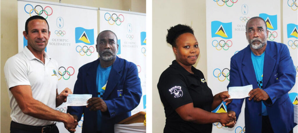During a presentation ceremony, President of the St. Lucia Olympic Committee (SLOC) Inc., Alfred Emmanuel, presented cheques to representatives of two associations, wishing them well in their upcoming endeavours.