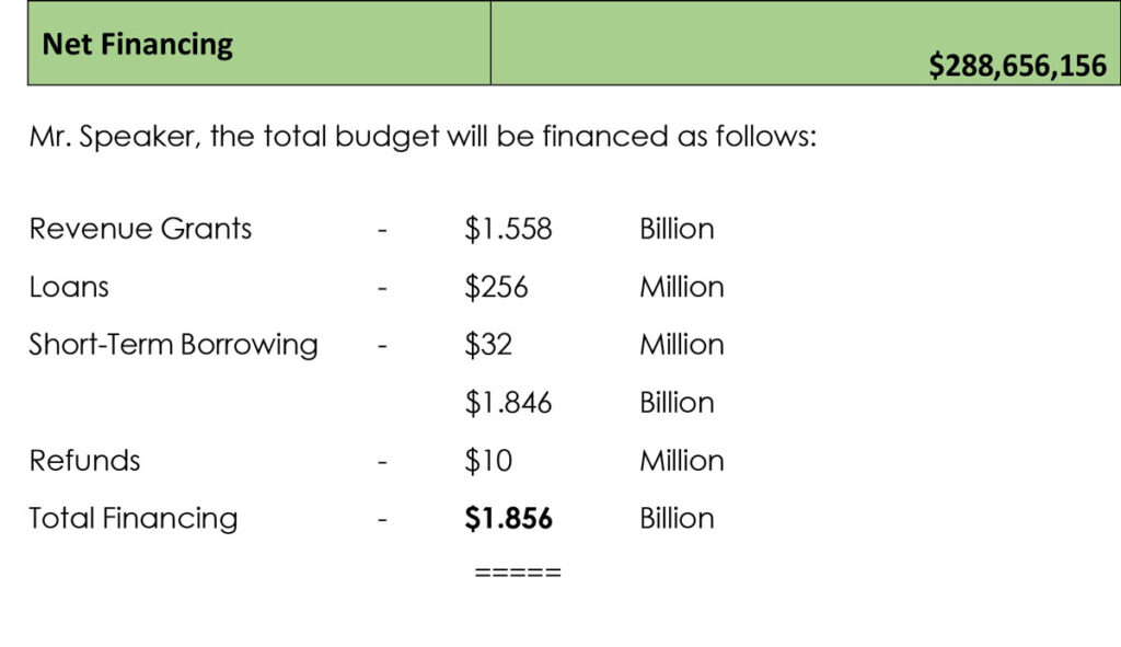 Mr. Speaker, I will also like to indicate that given our fiscal management we project an Overall Deficit of $ 150.1 million compared to the $ 394.6 million in approved estimates and $324.4 million for the year 2022.