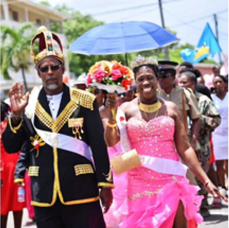 The La Rose and La Marguerite Societies both hold an annual festival or ‘Gwan Fèt’—an elaborate and colourful event full of pomp and pageantry, which is preceded by several months of nightly singing practices called “seances”.