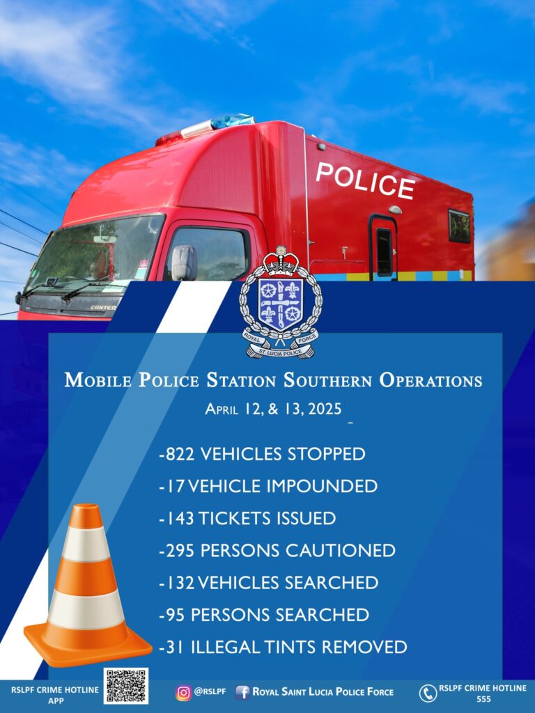 The Royal Saint Lucia Police Force remains committed to protecting lives and property, promoting road safety, and strengthening law and order across the island. Operations of this nature will continue as part of a broader strategy to foster a culture of compliance and responsible driving.