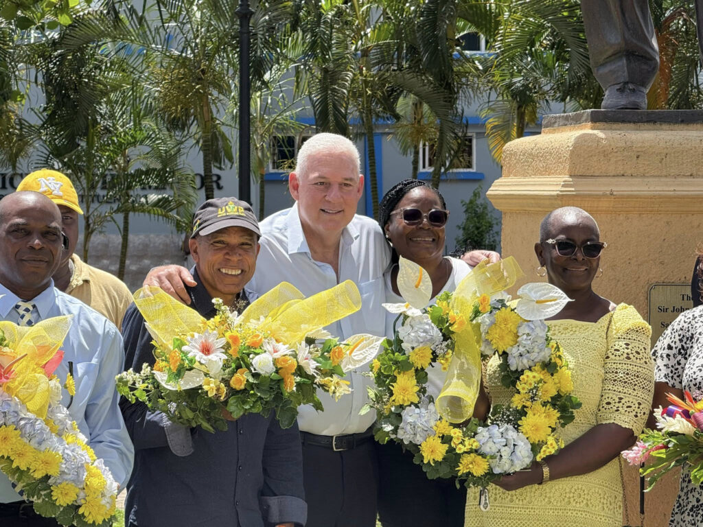 The members of the UWP visited Sir John Compton’s statue at Constitution Park to reflect on their founder’s impact.