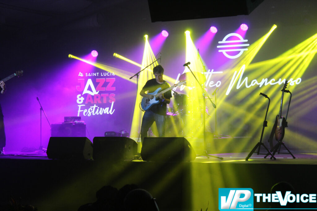 Matteo Mancuso, recognized as the ‘Future of guitar jazz,’ led his three-member band—consisting of lead and bass guitars, and drums—creating an electrifying atmosphere that filled The Pavilion halls at the Rodney Bay venue.