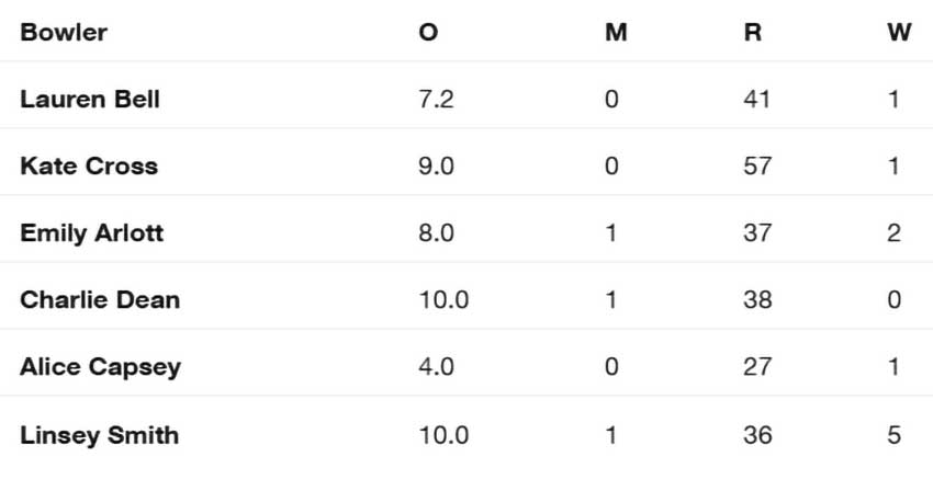 Captain Hayley Matthews and Afy Fletcher took 2 wickets each.