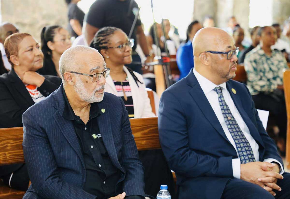 L-R: H.E Dr Didacus Jules and His Lordship, the Honourable Justice Rohan Phillip, High Court Judge, Eastern Caribbean Supreme Court seated in the congregation at the OECS Thanksgiving Service.