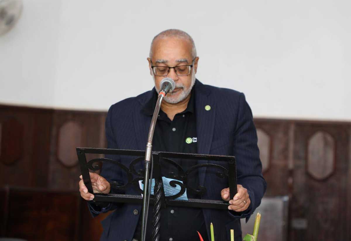 Ross Daniel leads the congregation in bidding prayers at the OECS Thankgiving Service.