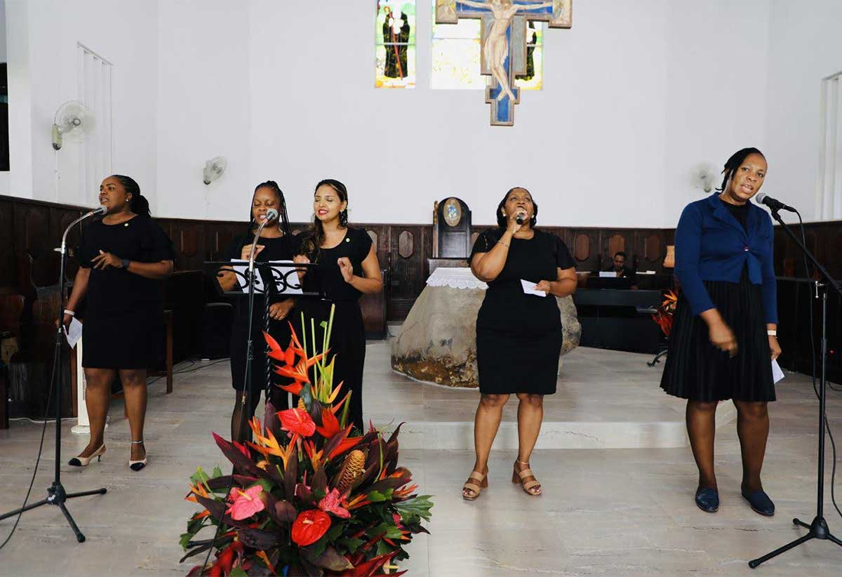 Members of the OECS Staff Group deliver a stirring choir rendition at the OECS Thanksgiving Service.