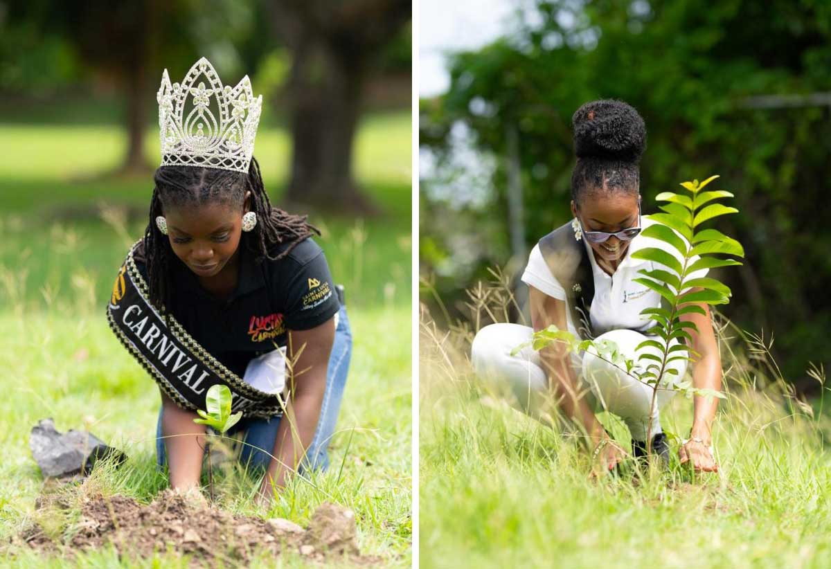 The seven delegates of this year’s pageant were joined for the initiative by the reigning Carnival Queen, Shan Lucien, Minister for Tourism, Investment, Creative Industries, Culture and Information, Honourable Dr. Ernest Hilaire, Chairperson of the Carnival Planning and Management Committee, Ms. Tamara Gibson, Chief Forest Officer, Mr. Alwin Dornelly, and team members from the Department of Forestry, and the CPMC.