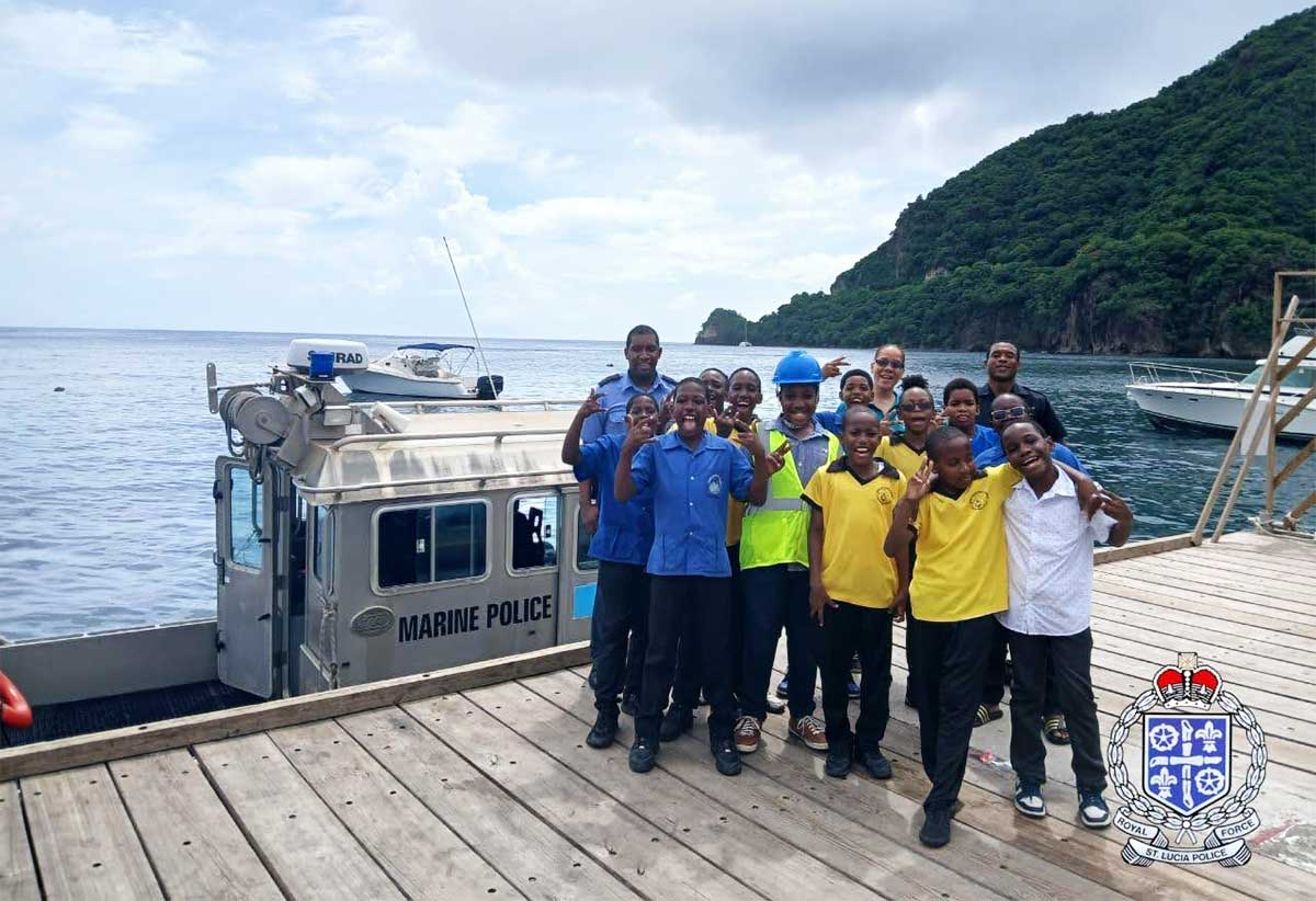 Adding to the excitement, students were treated to a scenic boat tour of the stunning Soufrière Bay aboard the Police Marine Unit’s vessel. The tour offered a unique opportunity for students to view the island’s picturesque coastline and learn firsthand about the Marine Unit’s critical role in safeguarding Saint Lucia’s territorial waters.
