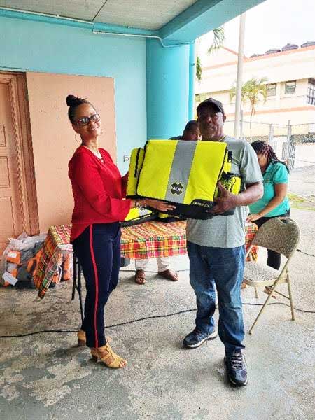 In the weeks leading up to Fishermen’s Feast, the Department of Fisheries and UBEC have partnered to distribute safety grab bags to boat owners and boat captains, in an effort to increase overall safety at sea for fisherfolk. The distribution commenced on June 10th at the Dennery fish landing site and will culminate on July 2nd in the fishing village of Anse-la-Raye. It is well-known that fishing is one of the most dangerous professions. Therefore, it was determined that the best way to celebrate and honour hardworking fisherfolk, is to enhance their safety by providing a grab bag to each licenced boat owner. Each bag contains items such as a VHF marine radio, first aid kit, signal mirror, distress light and flag, sea anchor, batteries, and an emergency blanket. Several fisherfolk would have received the necessary training on the use of the safety equipment, through a Boat Masters Training Course facilitated by UBEC, in collaboration with the Department of Fisheries, and administered by the Marine Unit of the Royal St. Lucia Police Force.