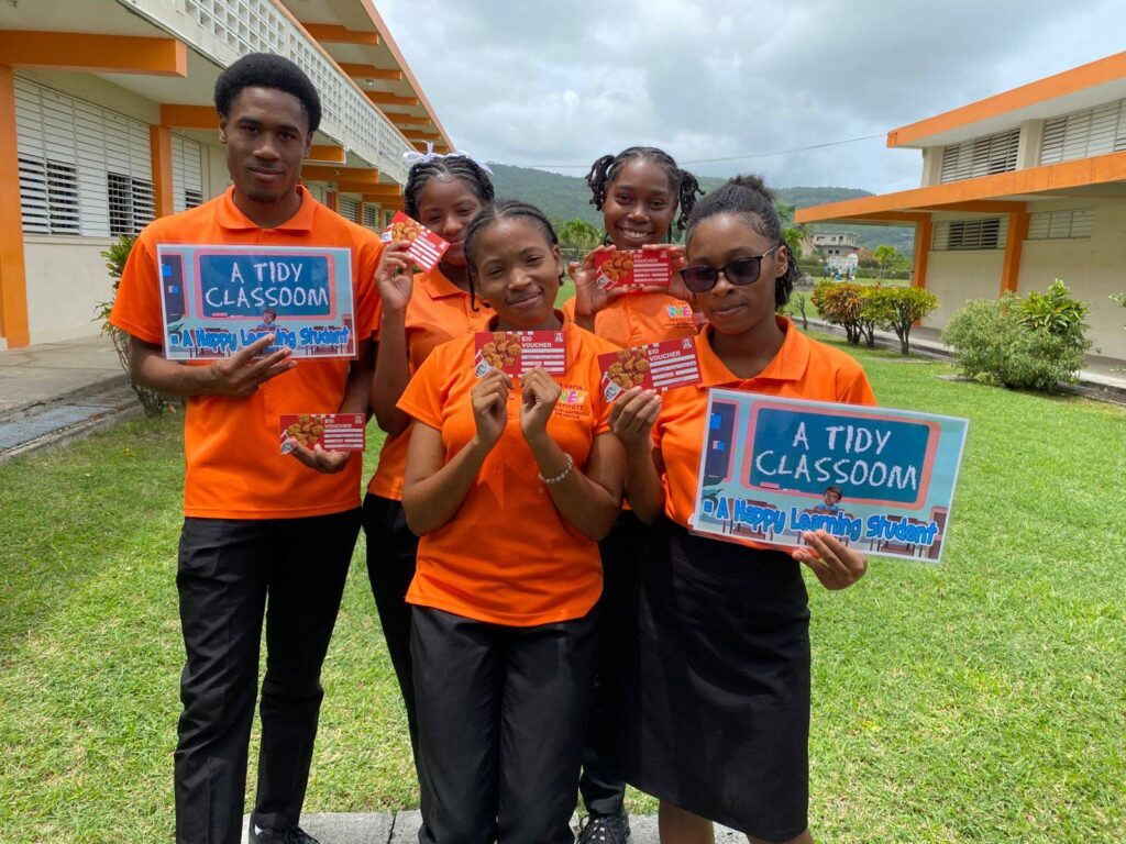 Titled “Pi Bèl Klas-La”, which means “The Most Beautiful Classroom” in Kwéyòl, the competition invited all classes to take pride in their learning environments by focusing on cleanliness, organization, and proper waste disposal. More than just a beautification effort, the program promoted teamwork and school spirit while reinforcing key values around sustainability and personal responsibility.