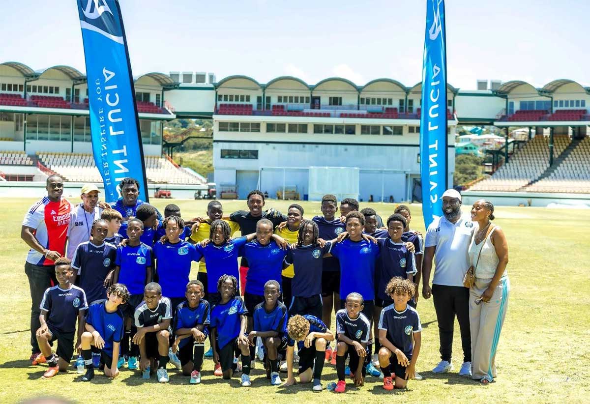 Arsenal and England footballer Myles Lewis-Skelly delighted a group of young Saint Lucian footballers when he joined their training session at the Daren Sammy Cricket Ground on Tuesday, July 1, 2025.