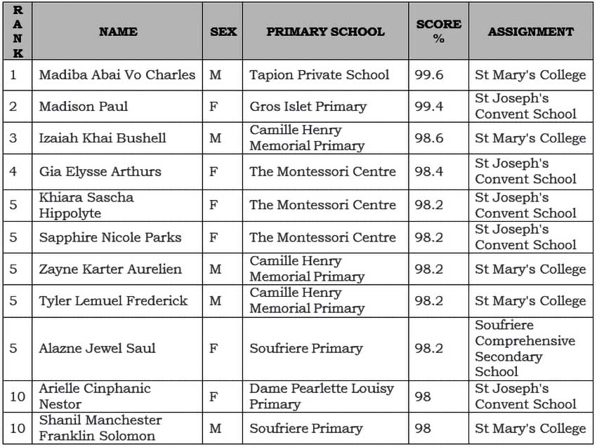 A synopsis of candidates’ performances was released by St. Lucia’s Ministry of Education early yesterday.